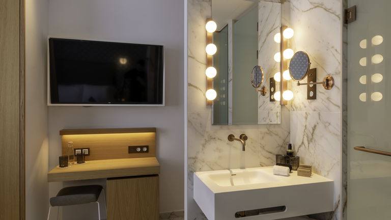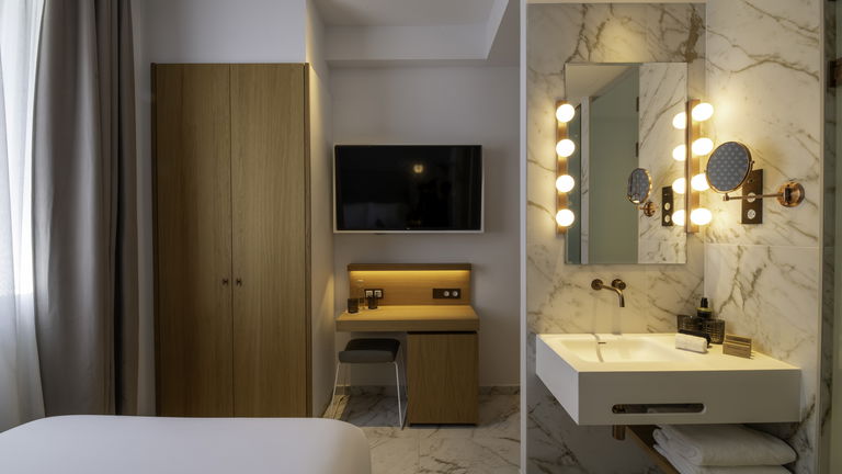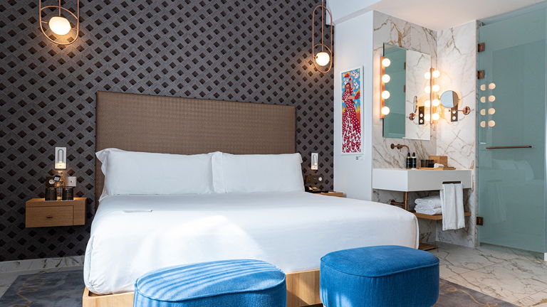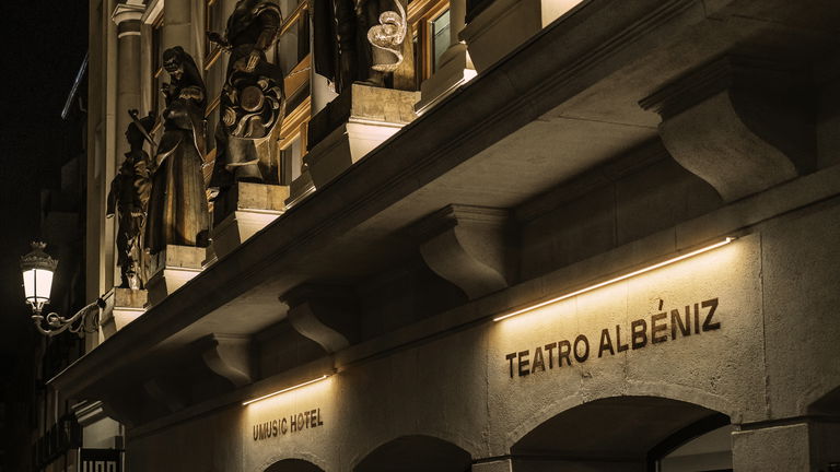 UMusic Hotel Madrid se encuentra a pocos pasos de la Puerta del Sol, en el corazón del emblemático barrio de Sol. Este hotel de cinco estrellas combina un alojamiento excepcional con entretenimiento inmersivo, situado dentro del revitalizado Teatro Albéniz. A lo largo de todo el hotel, la cultura y la música son protagonistas, ofreciendo una experiencia única que celebra el vibrante espíritu artístico de Madrid.