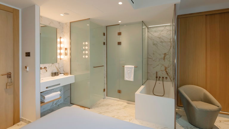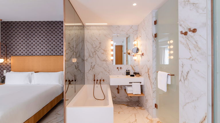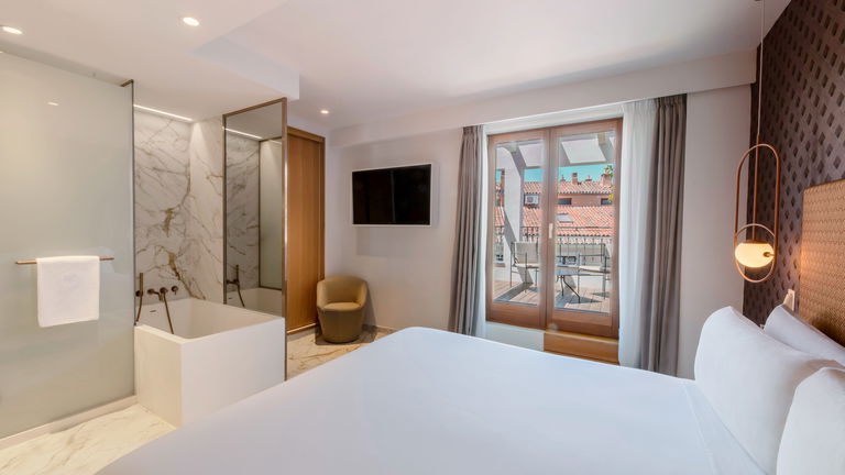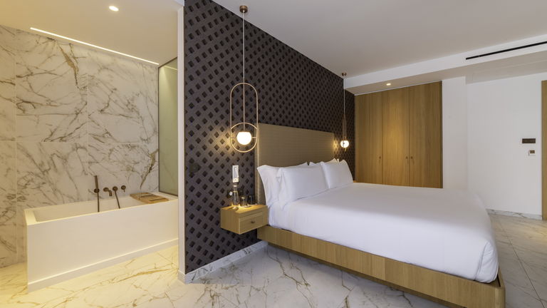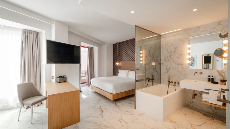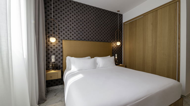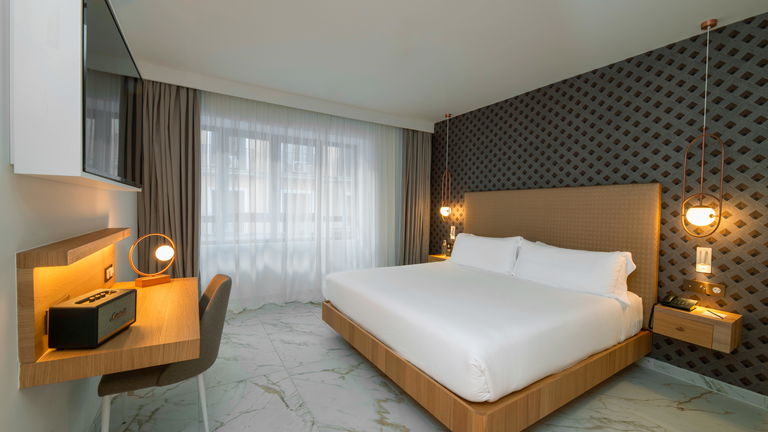 El hotel cuenta con 130 habitaciones y suites premium, dos elegantes vestíbulos, un restaurante, una piscina exterior, un gimnasio y una terraza con vistas panorámicas al skyline madrileño. Los huéspedes también disfrutan de acceso directo al histórico Teatro Albéniz, un edificio de gran valor arquitectónico y cultural. Además, el hotel ofrece espacios de reuniones ideales tanto para eventos de negocios como para celebraciones sociales. Para los amantes de la música, el hotel también dispone de una cuidada biblioteca de vinilos, ofreciendo una experiencia musical única.